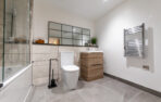 Further features include wall-mounted ceiling panel heaters, bathrooms with oak effect basin cabinets and polished concrete style wall and floor tiles, and kitchens with the latest integrated appliances.