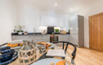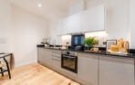 The kitchens feature modern gloss white cabinets and granite worktops throughout, whilst the stone windowsills preserve the industrial feel, creating the perfect blend of old meets new.